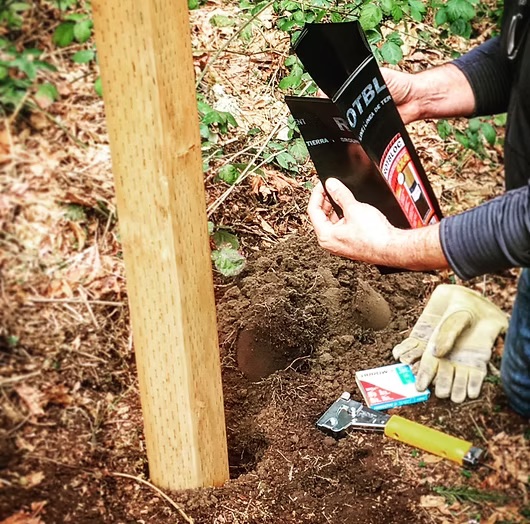 5. Set your pole with the groundline indicator level with your groundline, with two inches of ROTBLOC showing above the groundline to protect from the soil, UVA and moisture which break down