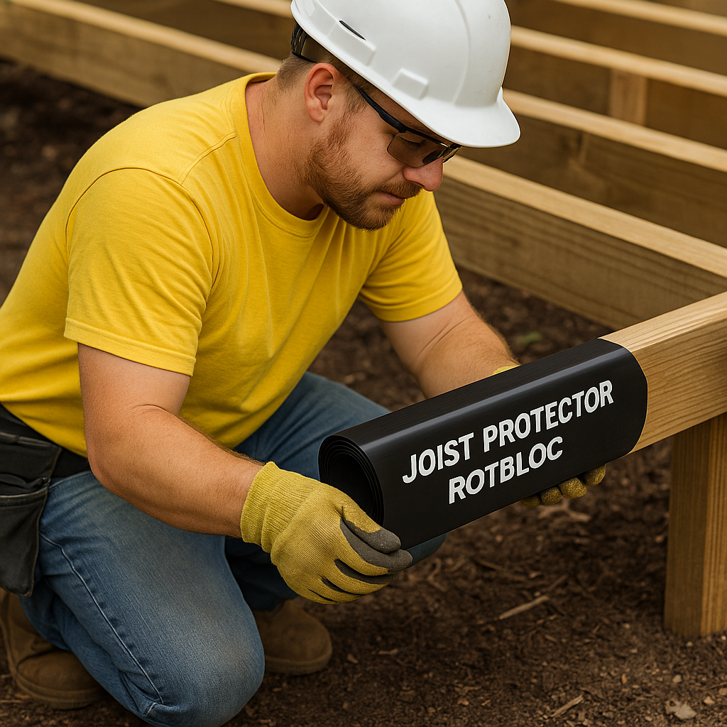The Rotbloc Joist Protector safeguards wooden joists and beams from rot and water ingress in deck, fence, and structural applications. Designed for simplicity, it creates a waterproof seal that prevents rot in areas prone to standing water or direct ground contact.